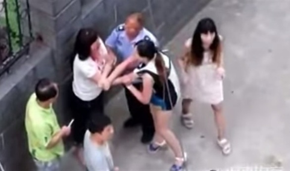 نشبت مشاجرة عنيفة بين زوجة صينية وعشيقة زوجها فى إحدى الشوارع، حيث اشتبكت الزوجة فى مشاجرة مع العشيقة التى لم تتوان عن استخدام قوتها لضربها؛ ما دعا الزوجة أن تخلع "الشبشب" لتدافع عن نفسها.