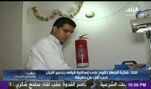 عرض الإعلامي أحمد موسي، تقريرا فى برنامجه مساء اليوم "الثلاثاء" عن اختراع لشاب يدعي محمد شتا يستطيع تفجير أي جبل خلال دقيقة واحدة وبإمكانه حفر "قناة السويس" الجديدة في 3 اسابيع.