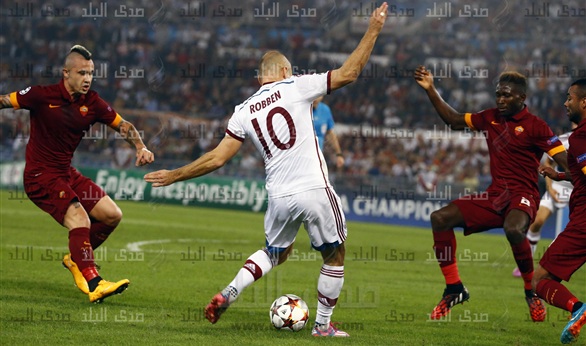 احرز أهداف البايرن روبن " هدفين " وماريو جوتزه و روبرت ليفاندوفسكي ومولر وريبري وشاكيرى فيما أحرز هدف روما جرفينهو