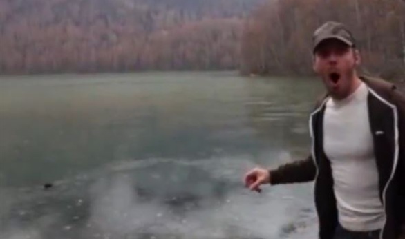يبدو السائح الشاب في الفيديو وهو يلقي حجرا صغيرا بقوة وبشكل أفقي بحيث يلامس أكثر من مرة سطح البحيرة المتجمدة قليلا، قبل أن يغوص فيها، فبدا الحجر وكأنه يعزف على اوتار البحيرة لتصدر صوتا جديدا بالنسبة للسائح وزوجته التي كانت ترافقه ولكثير ممن لم يسبق لهم أن عرفوا هذه الظاهرة.