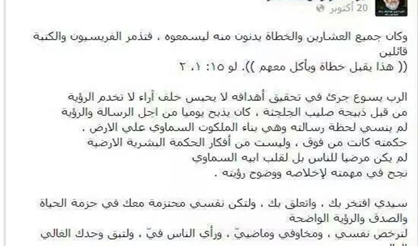 أعلن القس انداروس أسكندر ، الكاهن بأحدى كنائس البحيرة ، على صفحته بموقع التواصل الاجتماعى الفيس بوك عن تقديم استقالته من الكنيسة الارثوذكسية ، وقبولها .