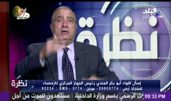 قال اللواء أبو بكر الجندي رئيس الجهاز المركزي للتعبئة والإحصاء، ان حجم الأسر الفقيرة في مصر بلغ 26.3% ، مشيراً إلى أن ذلك رقم مزعج للغاية، موضحاً أن دخل الاسرة أقل من 1600 جنية شهريا يجعلها تحت خط الفقر.
