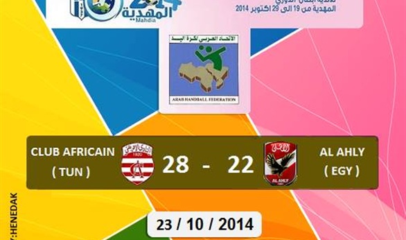 تلقى فريق اليد للسيدات بالنادى الاهلى خسارة امام نظيره فريق الأفريقي التونسي بنتيجة 28-22 ضمن إفتتاحية مباريات القلعة الحمراء فى البطولة العربية لفرق السيدات بنسختها الـ31 للأندية الابطال لكرة اليد.