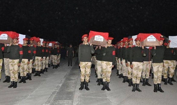 أعلنت محافظة المنيا حالة الحداء علي شهداء الحادث الارهابي بسيناء ، وقرر اللواء صلاح الدين زيادة محافظ المنيا تنكيس الأعلام بالمحافظة لمدة 3 أيام حدادً علي شهداء الحادث الإرهابي الخسيس الذي تعرض له جنود القوات المسلحة جنوب الشيخ زويد بالعريش مساء أمس الجمعة .