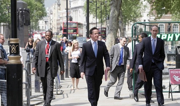 حرس رئيس الوزراء البريطاني يهرعون به لسيارته خوفا من رجل