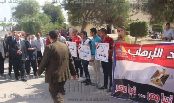 نظّم اليوم، طلاب جامعة دمياط وقفة بكلية التربية، تضامناً مع القوات المسلحة وتنديداً بالحادث الإرهابي الذي استهدف أفراد القوات المسلحة بشمال سيناء.