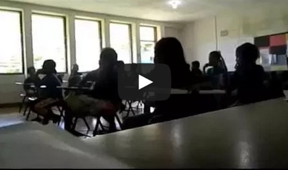 قامت معلمة بالتسبب فى الذعر والفزع لدى تلاميذ فصلها وذلك عندما كانوا ينتظرونها ودخلت عليهم فجأة مرتدية ملابس ووجها مخيفاً ليصبحوا فى حالة ذعر مسرعين يصرخون ويبتعدون عنها.