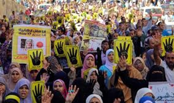 وجابت المسيرة الشوارع الرئيسية بالمدينة، رافعين علامات رابعة وصورا للرئيس المعزول .