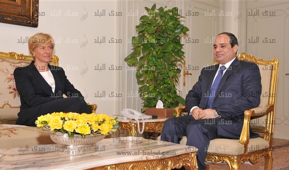 اِستقبل الرئيس عبد الفتاح السيسي، اليوم بمقر رئاسة الجمهورية، السيدة روبرتا بينوتي، وزيرة الدفاع الإيطالية، وذلك بحضور الفريق أول صدقي صبحي، وزير الدفاع والإنتاج الحربي، ومن الجانب الإيطالي حضر كل من السفير ماوريتسيو ميتساري، سفير جمهورية إيطاليا بالقاهرة، وبيير فاوستو ريكيا، المستشار السياسي والاستراتيجي لوزيرة الدفاع الإيطالية.