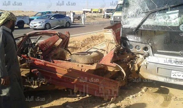 بالصور..مصرع 3 أشخاص وإصابة 4 آخرين في حادث تصادم بمطروح