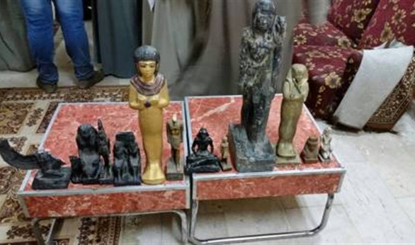 تمكنت وحدة مباحث مركز ساحل في اسيوط من ضبط 13 تمثالا أثريا بمنزل عاطل بقرية جزيرة العونة.