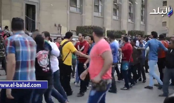 وتطورت الأحداث من التراشق بالألفاظ إلى الاشتباك بالأيدي ، ما أدى إلى تدخل الأمن الإدارى فاعتدى عليهم بعض الطلاب.