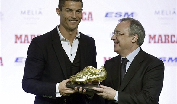 اعتبر فلورنتينو بيريز رئيس نادي ريال مدريد الإسباني اليوم أن نجم الفريق كريستيانو رونالدو، الفائز بجائزة الحذاء الذهبي التي تمنح لهداف البطولات الأوروبية، هو أفضل لاعب في العالم والوريث الشرعي لألفريدو دي ستيفانو الذي توفي العام الجاري.