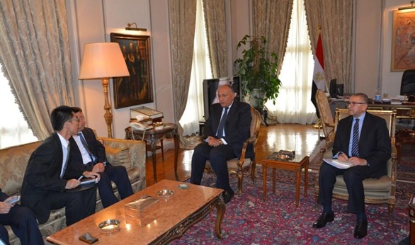 وأضاف المتحدث أن الوزير شكري عرض بشكل مفصل على المسئول الصيني المشروعات الكبرى في مصر، وتطلعنا لمشاركة الصين في هذه المشروعات خاصة مشروع تنمية محور قناة السويس، بالإضافة لتطلعنا لمشاركة الشركات الصينية في المؤتمر الاقتصادي في شهر فبراير المقبل، والذي يستهدف جذب الاستثمارات الصينية إلى مصر، فضلا عن الاستفادة من التجربة الصينية فيما يتعلق بإنشاء المناطق الصناعية الخاصة والمناطق الحرة. ونوه بموقع مصر الهام في منطقتي الشرق الأوسط وأفريقيا، الأمر الذي يجعلها مركزاً للتجارة الإقليمية والدولية خاصة في القارة الإفريقية، مشيراً إلى استضافة القاهرة خلال الفترة المقبلة لقمة التجمعات الاقتصادية الثلاثة السادك والكوميسا وتجمع شرق أفريقيا، حيث من المنتظر التوقيع على اتفاقية تجارة حرة بين التجمعات الثلاثة، الأمر الذي يمكن للصين معه استغلال موقع مصر كقاعدة للانطلاق في أفريقيا في ظل إلغاء القيود الجمركية المرتقب بين دول التجمع.