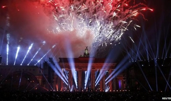 رصد تقرير لهيئة الإذاعة البريطانية "بي بي سي" الأجواء الاحتفالية التي عاشتها العاصمة الألمانية بمناسبة الاحتفالات بسقوط حائط برلين، حيث انطلقت آلاف البالونات لتزين سماء العاصمة الالمانية على انغام انشودة الفرح لبيتهوفن وسط صيحات حشود المحتفلين، في اختتام مثير لاسبوع الاحتفالات بالذكرى الـ25 لسقوط حائط برلين.