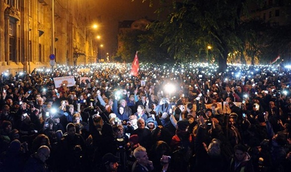 وكان نحو 100 ألف مجري قد تجمعوا في 28 أكتوبر للاحتجاج على ضريبة مزمعة على حركة المعلومات على الإنترنت وعلى النهج الأوسع لحكومة أوربان التي يرون أنها تقوض الديمقراطية والعلاقات مع دول الاتحاد الأوروبي.