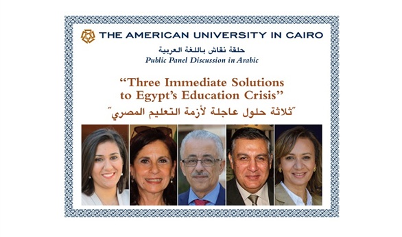 تعقد الجامعة الأمريكية بالقاهرة، الأحد المقبل، ندوة عامة باللغة العربية بعنوان "ثلاثة حلول عاجلة لأزمة التعليم المصري"، والتي تتناول فيها المشكلات التي تواجه التعليم المدرسي والجامعي والبحث العلمي مع طرح الحلول العاجلة للخروج من الأزمة.