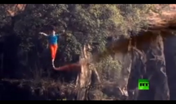 ذكر موقع "روسيا اليوم" أن بهلوانيين أحدهما ألماني والآخر نمساوي سارا على حبل مشدود فوق شلال فيكتيوريا في أفريقيا الجنوبية.