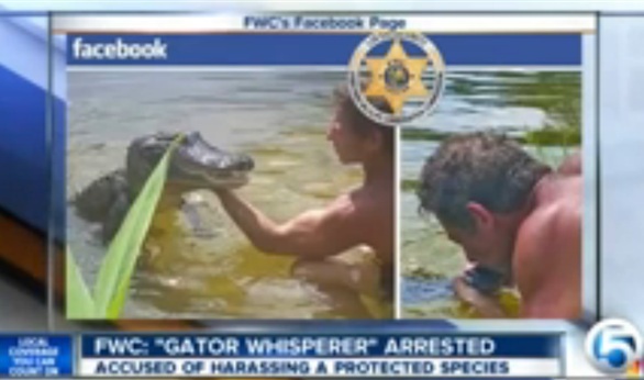 وقال الحساب أن الشرطة اعتقلت هال كريتمان 51 عاما، بعد تلقيها بلاغا قدمه مسؤولون في الحياة البرية بولايدة فلوريدا، وقالت أنه يفرض رسوما على السياح تقدر بـ250 دولار أمريكي حتى يرونه مع التماسيح في الماء.
