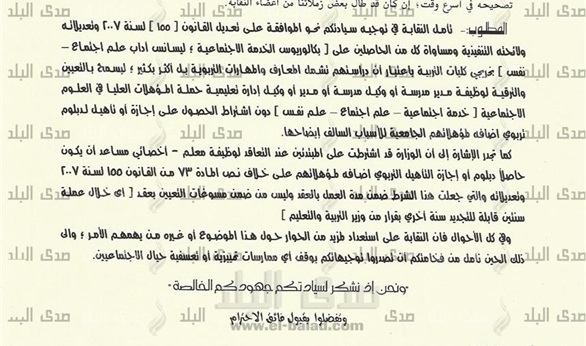 ننشر مذكرة الاجتماعيين لرئيس الجمهورية لحل أزمة التربوي
