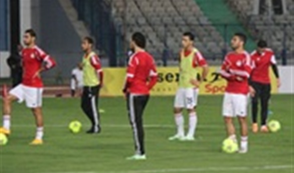 لاعبو المنتخب يجرون تدريبات الإحماء بإستاد القاهرة