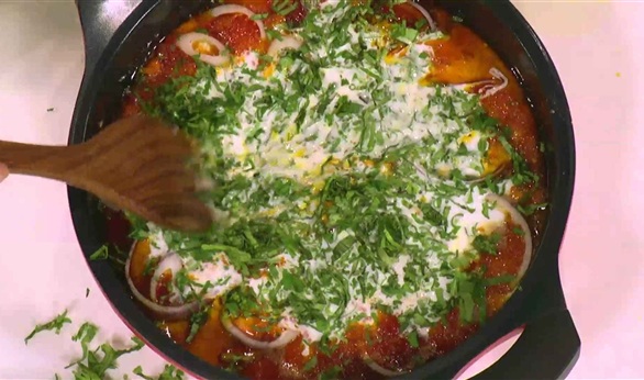 - تُسخن الكمية المتبقية من السمن في مقلاة على نار متوسطة، يُضاف فص ثوم مفروم والكزبرة الجافة وتُقلّب حتى يصير لونها ذهبياً.