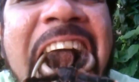 وبدأ الشاب العرض بإخراج العنكبوتين الضخمين من داخل فمه في مشهد لا يصدق، وعقب ذلك قام بإدخال ثعبان ومعه عنكبوت داخل فمه واحتفظ بهما بالكامل داخله قبل أن يخرجهما مرة أخرى.