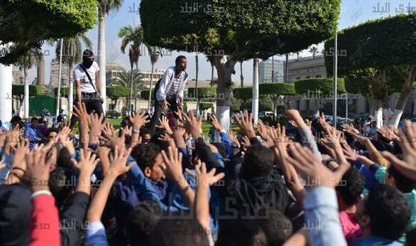 يتظاهر الآن العشرات من طلاب الإخوان المسلمين بجامعة القاهرة، أمام المكتبة المركزية، وذلك ضمن سلسلة الفعاليات التى أعلنوا عنها تحت عنوان" فك الحصار"، تنديدا بفصل زملائهم، وللمطالبة بضرورة عودة زملائهم المفصولين، وللمطالبة برحيل قوات الشرطة عن محيط الجامعة.