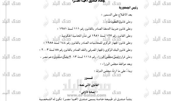 بالصور.. الجريدة الرسمية تنشر قرار رئيس الجمهورية بإنشاء "صندوق تحيا مصر"