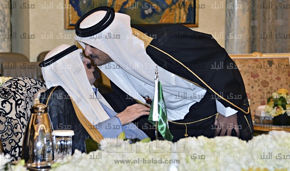 أمير قطر يقبل رأس خادم الحرمين فى إشارة لذوبان الجليد الخليجي