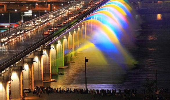 نوافير "بيلاجيو" في مدينة لاس فيجاس الأمريكية: وبلغت كلفة النافورة حوالي 40 مليون دولار. ونافورة "بانبو مون لايت رينبو" في العاصمة الكورية الجنوبية سيؤول: ويبلغ ارتفاعها 1140 متراً، وتعتبر أطول جسر نافورة في العالم.