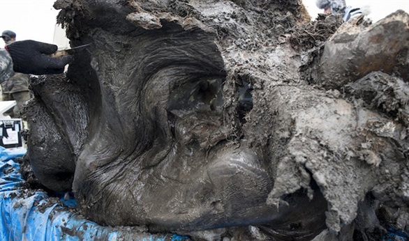 وخلال الحفريات وجد العلماء سائلا أحمر داكنا، قد يكون من دم الماموث، الذي عثر عليه العلماء في حالة جيدة.