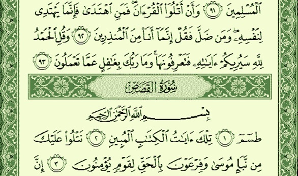 سورة القصص هي السورة الثامنة والعشرون بحسب ترتيب المصحف العثماني، وهي السورة التاسعة والأربعون بحسب نزول سور القرآن، نزلت بعد سورة النمل، وقبل سورة الإسراء، فكانت هذه (الطواسين) الثلاث متتابعة في النزول، كما هو ترتيبها في المصحف، وهي متماثلة في افتتاح ثلاثتها بذكر موسى عليه السلام. ولعل ذلك الذي حمل كتاب المصحف على جعلها متلاحقة. وهي ثمان وثمانون آية باتفاق العادين.