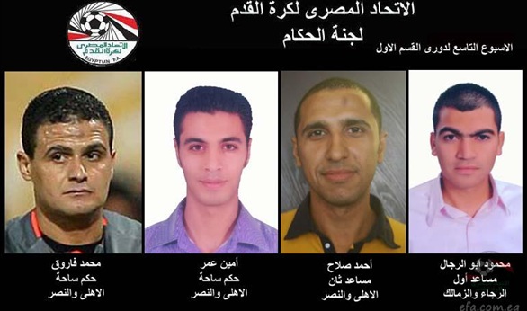 الرجاء والزمالك : محمد عادل حكم ساحة يعاونه محمود ابو الرجال ومحمد محمود لطفى ..وضياء يوسف حكما رابعا