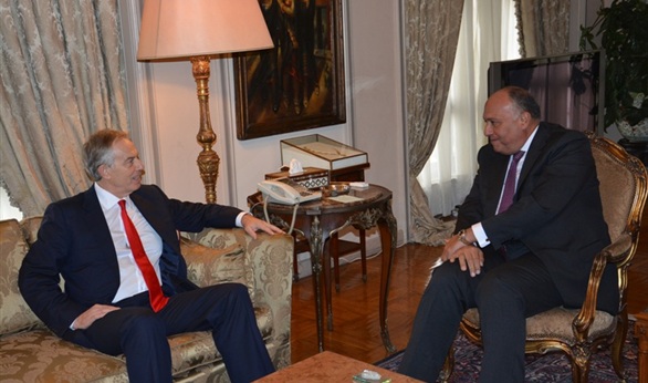 بالصور.. وزير الخارجية لـ"توني بلير": نتابع تنفيذ مقررات مؤتمر إعمار غزة