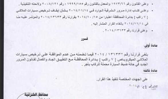 محافظ الشرقية يلغي قرار وقف تراخيص الـ 7 راكب