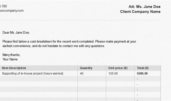 ويُمكن للمستخدمين تجربة موقع http://invoiceto.me المجاني والذي يوفر أداة تسمح بإنشاء الفواتير بكل سهولة، فالمستخدم لا يحتاج إلى تثبيت أي برنامج أو أداة لإتمام هذه العملية وفقا لما ذكرتة " البوابة العربية للأخبار التقنية ".
