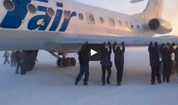 وذكرت وكالة أنباء "تاس" الروسية أن مقطع فيديو ظهر على شبكة الإنترنت أوضح قيام العشرات من الركاب بمطار ايجاركا بدفع الطائرة من طراز "توبوليف 134" من أجنحتها بعد أن تجمد نظام المكابح وتوقف عجلات الطائرة لذا أسهم الركاب في دفعها عدة أمتار بعد أن توقفت على الأرض لمدة 24 ساعة وذلك نتيجة البرودة الشديدة.
