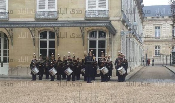 وانتشرت فرق الموسيقى العسكرية، وحرس الشرف على جانبي المبنى تمهيدا لاستقبال الرئيس المصري.