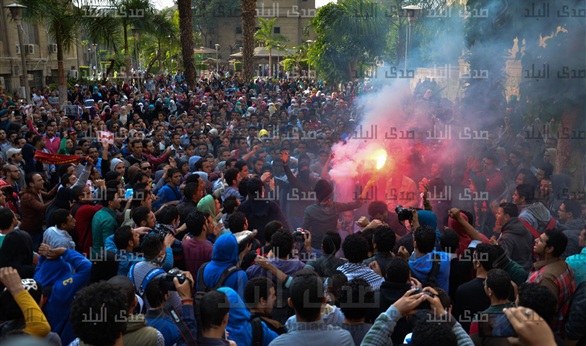 بالصور.. طلاب الإخوان يشعلون الشماريخ بجامعة القاهرة رفضا لبراءة "مبارك"