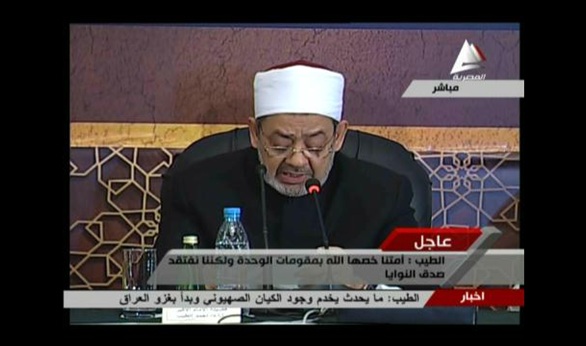 قال الدكتور أحمد الطيب، شيخ الأزهر، إن نظرية المؤامرة ليست هي السبب الوحيد فيما نعانيه في مجتمعاتنا العربية، ولكننا نعاني أيضًا من التفرقة والنزاع، مؤكدا أننا لا نزال نفتقر إلى الاتحاد يشبه الاتحاد الأوروبي، مشددا على ضرورة التصدي للدول التي تدعم الإرهاب بالمال والسلاح.