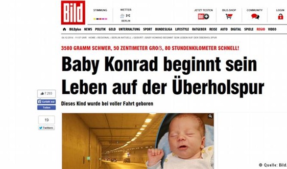 وذكر موقع "دويتشه فيله" الألماني أن المولود الذي سمي كونراد لم يستطيع الانتظار حتى وصول والديه إلى المستشفى.