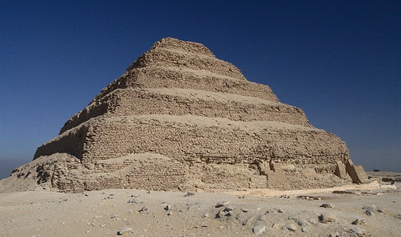 The Step Pyramid of Djoser at the Saqqara necropolis was the very first pyramid built by the ancient Egyptians. It was constructed during the 27th century BC for the burial of Pharaoh Djoser by his Vizier Imhotep. The ancient monument began as a traditional, flat-roofed mastaba but by the end of Djoser’s reign it had risen to a six stepped layer Pyramid and stood 204 feet (62 meters) high. As in earlier mastaba tombs, the burial chambers of the Step Pyramid are underground, hidden in a maze of tunnels.