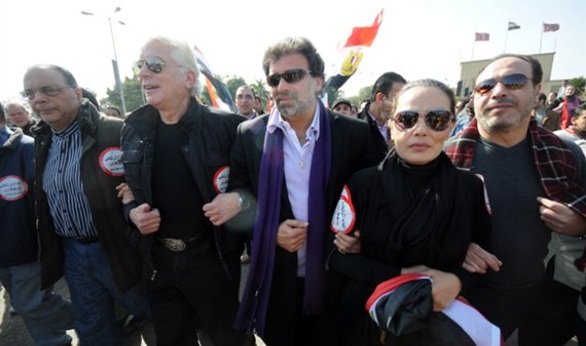 بالصور.. الفنانون ضحية الكلام في "اللي ملوش فيه".. مؤيدو "مبارك" وضعوا أنفسهم في ورطة.. ومؤيدو السيسي هتفوا يسقط المرشد