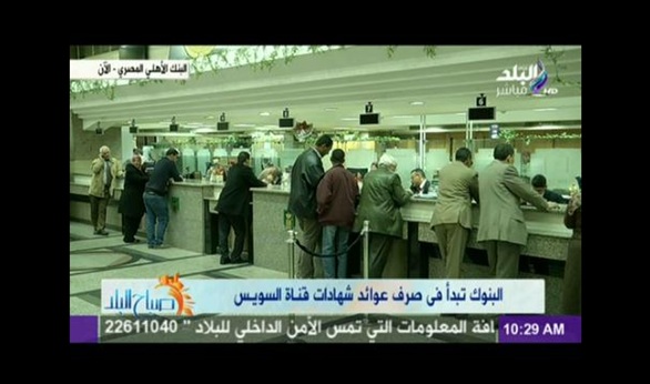 بدأت البنوك صباح اليوم، الأحد، في صرف أول عوائد شهادات قناة السويس الجديدة، ومن المقرر أن يستمر الصرف من اليوم وحتى نهاية يوم عمل الثلاثاء بعد المقبل.