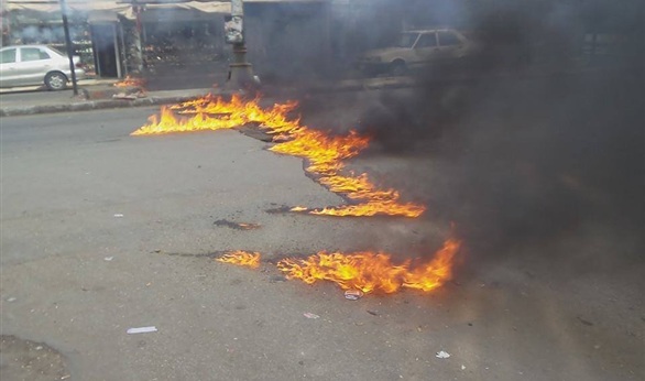 مجهولون يقطعون شارع "المالكي" بمدينة المنيا ويشعلون النار في الإطارات