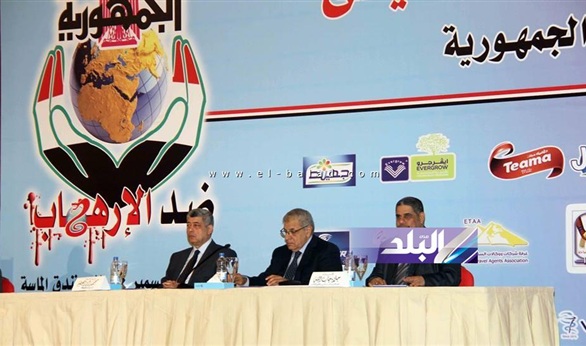 بالصور.. "محلب" خلال مؤتمر "لا للإرهاب": «اللي يجيي على مصر ما يكسبش»