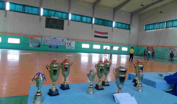 سلم الدكتور محمد القناوى رئيس جامعة المنصورة كأس نهائيات دورى كرة اليد للفرق الطلابية بالجامعة.