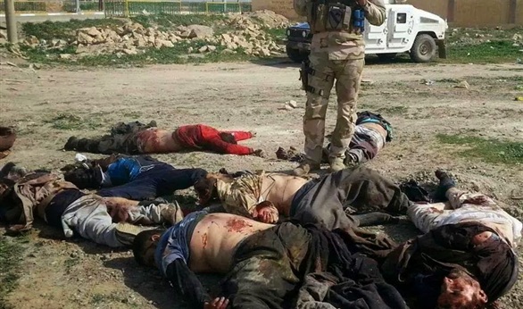 تمكن الجيش العراقي من قتل 16 إرهابيا قرب تكريت في محافظة صلاح الدين شمالي العراق.. فيما قتل 40 من عناصر تنظيم (داعش) الإرهابي في الأنبار غربي العراق نتيجة قصف جوي لقوات التحالف الدولي بقيادة الولايات المتحدة الأمريكية.