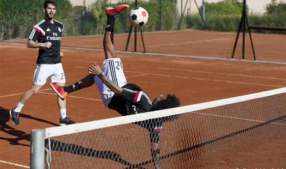 وتبادل لاعبو ريال مدريد إحدى كرات التنس ولكن باستخدام أرجلهم وذلك على أحد الملاعب المخصصة للعبة البيضاء في مدينة مراكش، وهي طريقة اتبعها الفريق لزيادة تركيزهم والعمل على تحكمهم بالكرة وتمريرها بشكل جيد ومتقن، وأيضا لإضفاء أجواء من المرح والمتعة على تدريبات الفريق.